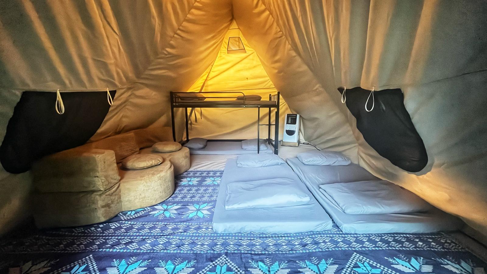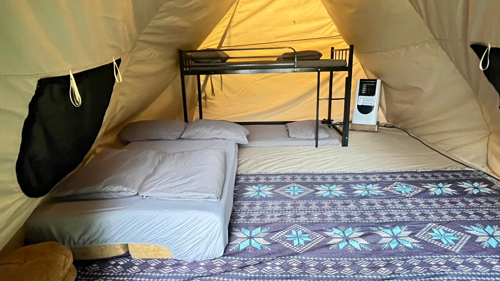 - Teepee Tent for 4 persons (max. 6), extra person needs to purchase our supplementary voucher to enjoy the same benefit.
